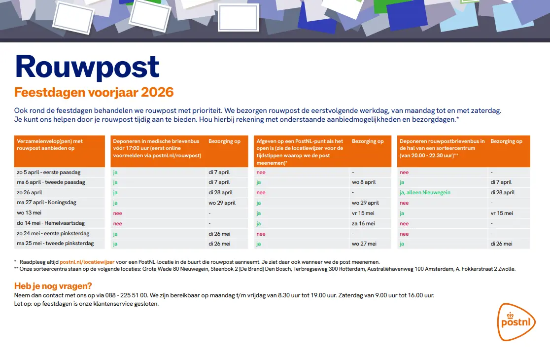 Aangepaste bezorgtijden rouwpost feestdagen voorjaar 2026